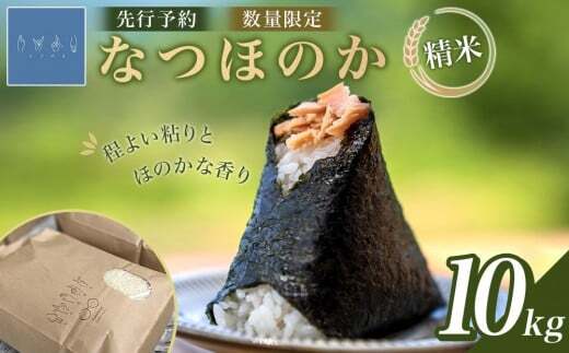 令和7年産なつほのか 10kg(精米) ▼ご注文時の注意事項 ・ご注文をいただいてから、1週間前後で発送となります。 ・着日指定はお受けできません。 ・天候や道路事情などによる遅延などもございますのでご了承ください。 ・当店のみでの直売となり、転売目的のご購入はお控えください。 ・配送先別をご希望の方は、納品書は同梱せず、ご登録のメールアドレスに送信いたします。 ▼なつほのかについて なつほのかは、笑みがこぼれるほどおいしいという名の「にこまる」を父に持ち、ヒノヒカリよりも高温耐性のある良食味品種として、令和4年度より大分県内にて本格導入された品種「大分なつほのか」は、令和4年産・5年米の食味ランキングで最高評価の「特A」を獲得(参考品種)するほど注目の品種となっています。 コシヒカリよりやや大粒で、 白濁が少なく粒ぞろいも良く、程よい粘りとほのかな香りが特徴です。そして、冷めても美味しく楽しめるので、お弁当やおにぎりにも相性抜群です。 美味しい食べ方として、圧力鍋や土鍋で炊くことで旨味が更に引き立った味わいが楽しめますよ♪ 大分の自然溢れる由布市挟間町で、愛情たっぷり育てたなつほのかを是非お楽しみください。 ▼商品詳細 産地:大分県由布市産 内容量:10kg 原料玄米:単一原料米 7年産 大分県由布市産 なつほのか 精白米年月日:商品に記載 保存方法:高温にならない場所及び涼しい場所 ▼【ご注意事項】 ・未開封でも、保管場所の気温や湿度が高ければ害虫は発生します。 ・色彩選別機による選別後、袋詰めの際にも入念な検品をしていますが、ごく稀に小さな石などが混入することもございますので、お米を炊く前に取り除いてからお召し上がりください。 ・黒変した粒や小さく割れた粒なども入りますが、自然のありのままのお米の姿でもあり、食べても身体に影響はございません。 ・新米の時期はお水を気持ち少なめに炊くことをお勧めしています。お好みに合わせてお楽しみください。